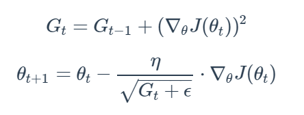 그러면 Adagrad처럼 Gt가 무한정 커지지는 않으면서 최근 변화량의 변수간 상대적인 크기 차이는 유지할 수 있습니다.