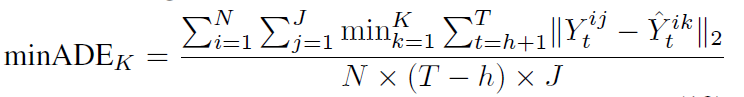 - FDE: 마지막 도달 위치에서 정답 좌표와 예측 좌표의 유클리드 거리