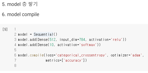 마지막층은 0~9까지의 숫자 10 종류로 분류할 것이므로 10으로 해준다.