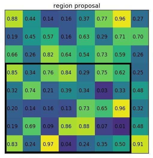 region-proposal의 값은 (0,3), (7,8)일 때 다음과 같다.