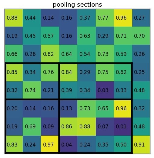 각각의 region proposal을 동일한 크기의 sections로 나눈다.