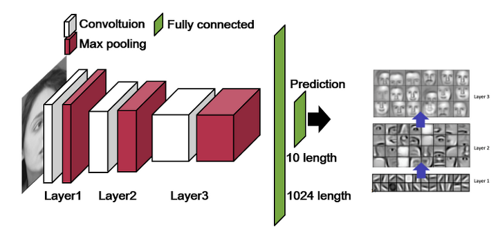 특징 추출과 topology invariance를 얻기 위해 filter와 sub-sampling을 거친다. 이 과정을 여러번 반복적으로 수행하여 local feature로부터 global feature를 얻어낸다. (convolution층과 (max)pooling층을 반복적으로 쌓음으로써 global feature를 얻어낸다. )
